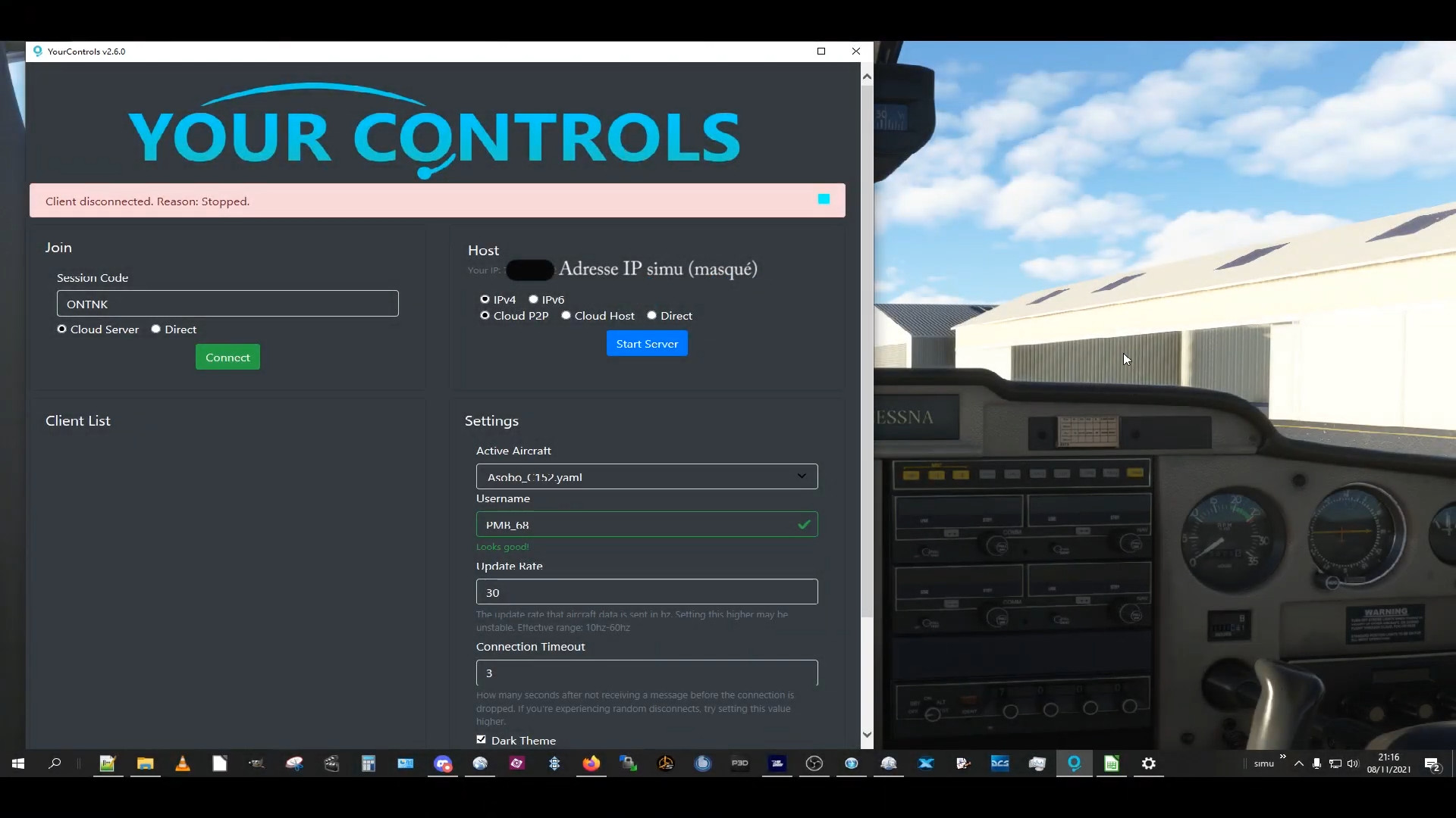 Flight simulator 2020 en cockpit partagé avec YourControls