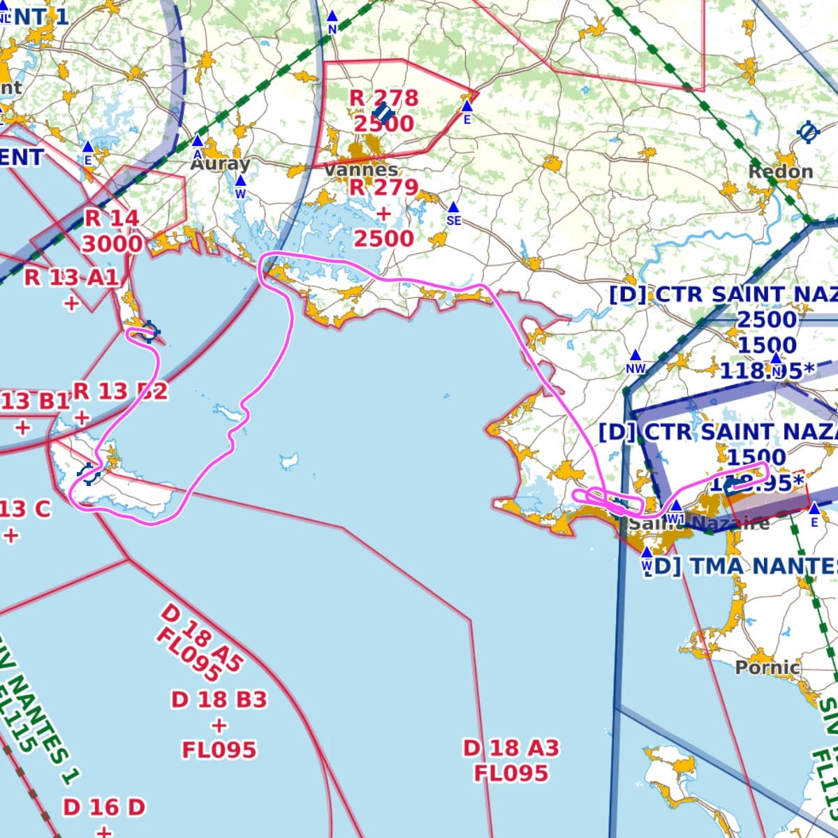 Belle-Île fait sans doute partie de ces lieux magiques que tout pilote rêve de survoler. Partant de Quiberon, le détour en vaut la chandelle avant de rejoindre Vannes. Il nous permettra d'admirer les paysages bretons incroyables tels que l'île d'Houat ou le Golfe du Morbihan. Puis, il suffira de longer la côte pour trouver La Baule et Saint-Nazaire, porte de la Loire-Atlantique qui sera la suite de notre voyage !