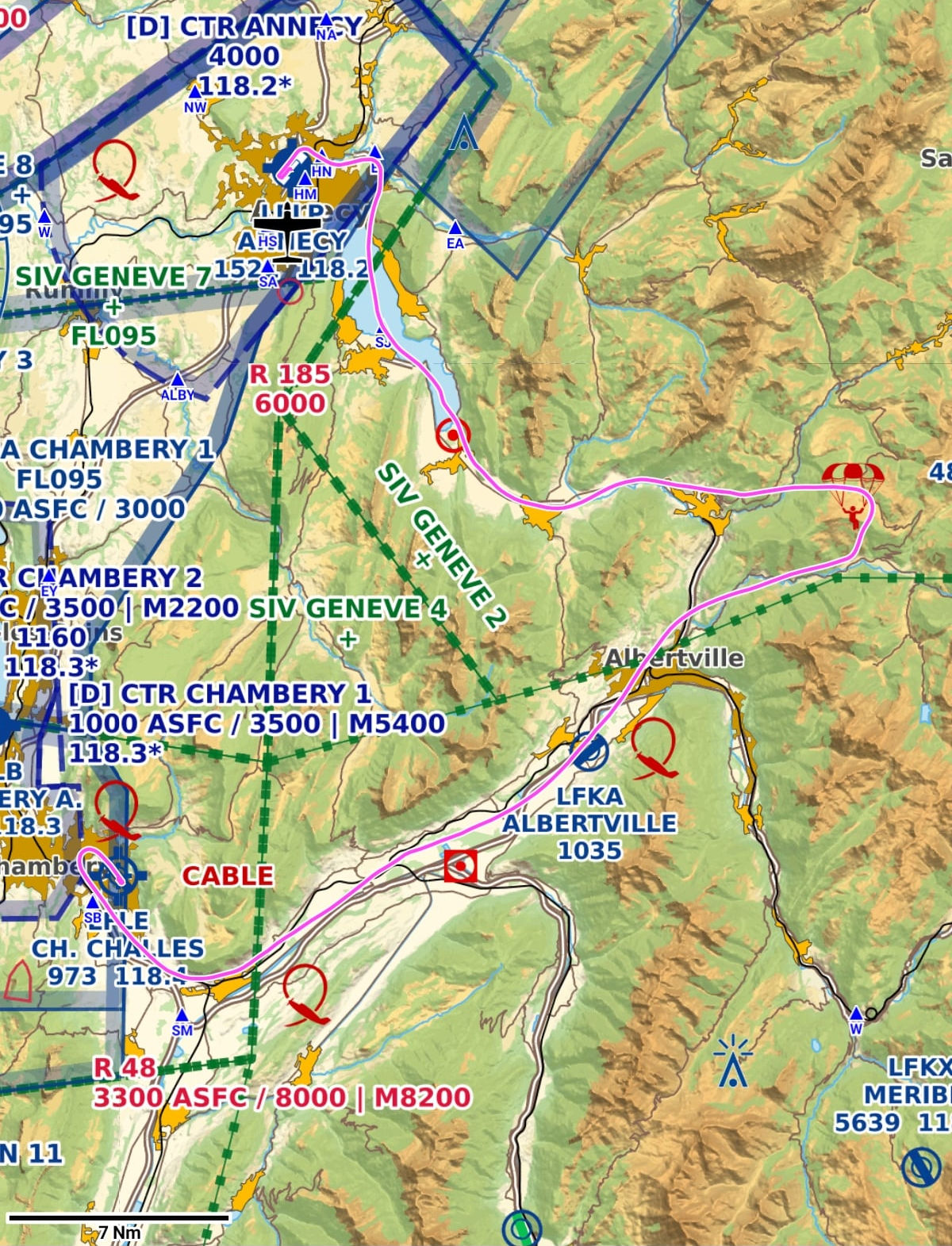 Cette étape est particulièrement courte, à peine 30 min de vol, donc ne pas hésiter à naviguer dans les massifs su secteur :