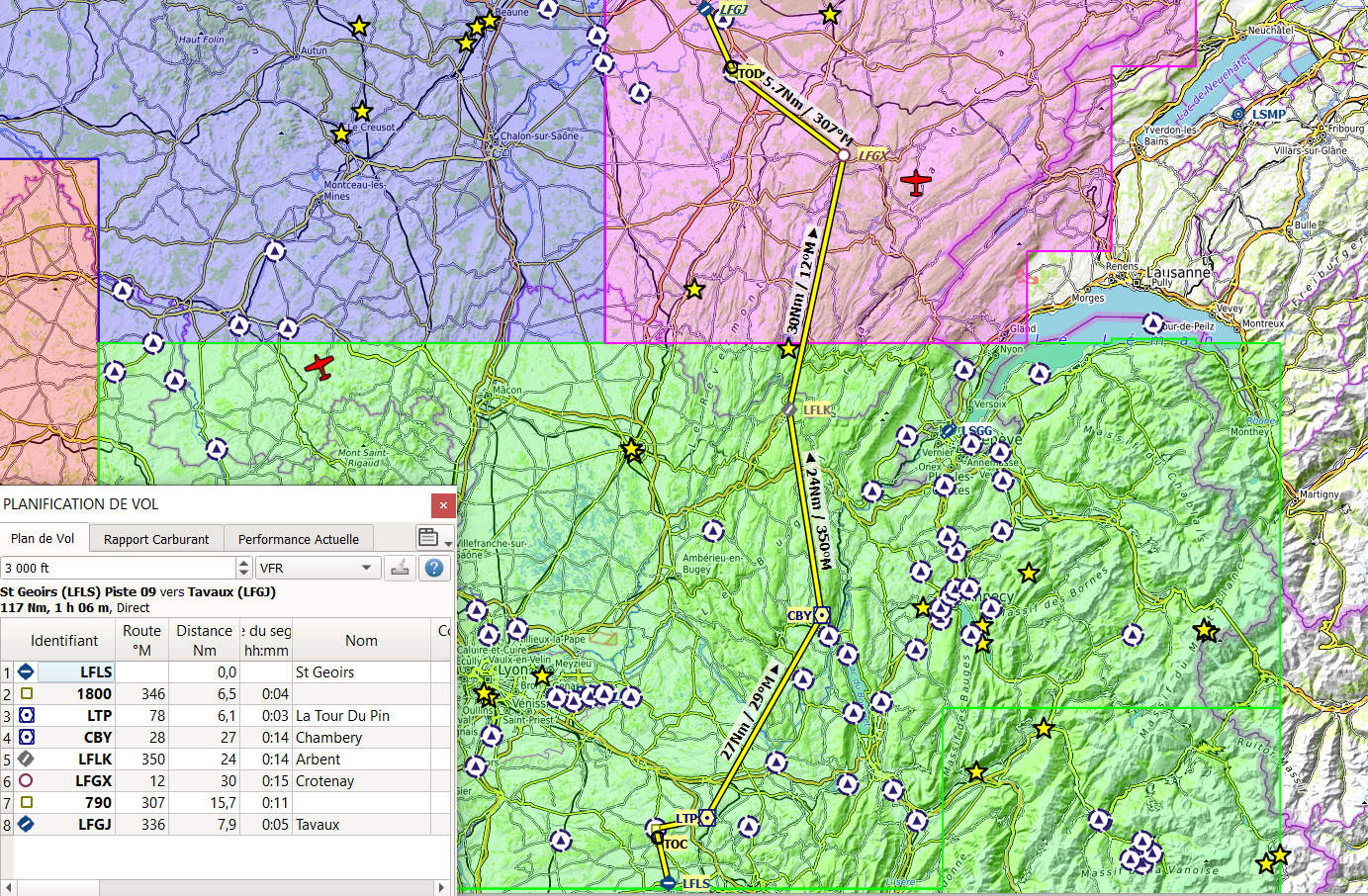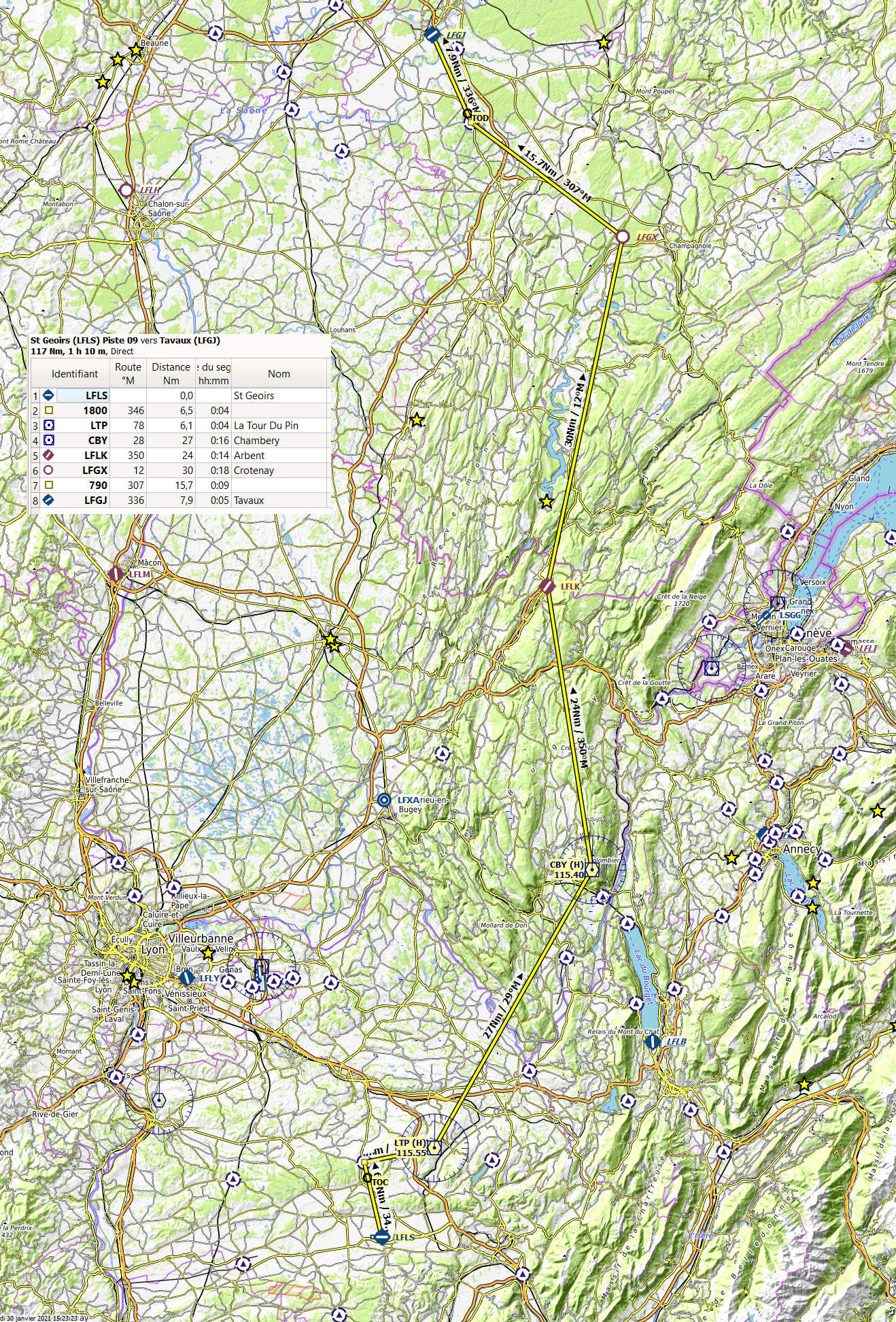 Une dernière mention : la nav traverse un espace aérien géré par nos amis Suisse ! Bien veiller la fréquence, et la bonne, évidemment ! Car là, je ne peux absolument pas dire si le trafic sera contrôlé ou non. Et ce serait dommage de leur donner une piètre image de nous, n'est-ce pas ?! ;-))