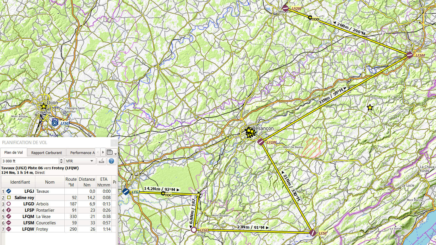VFR Dole LFGJ - Vesoul LFQW : les.pln et .gpx sont intégrés dans le zip d'origine ci-dessus