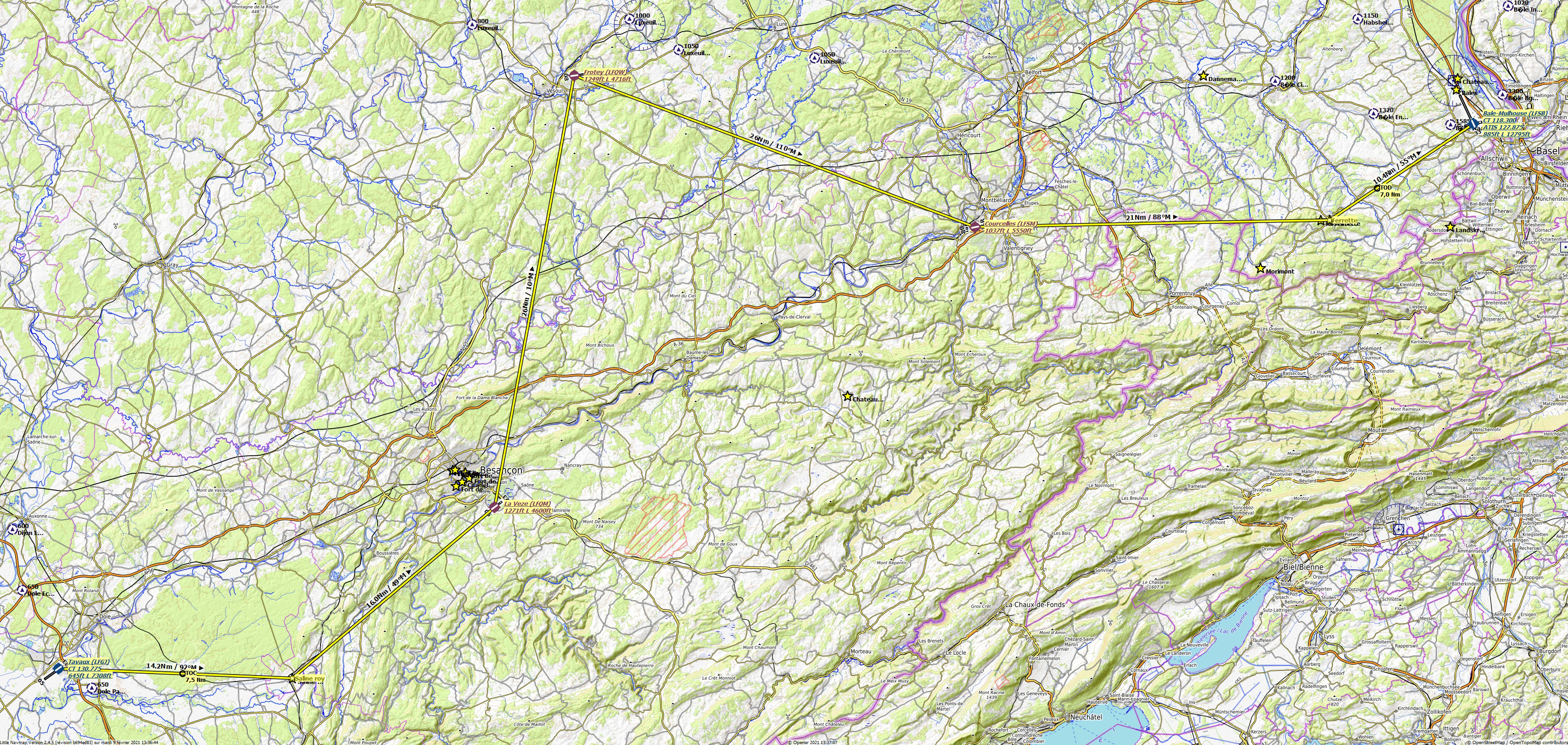 Le contrôle aérien de Bâle étant assuré au niveau TWR et GND par des Suisses en langue anglaise exclusivement, voilà une nav alternative.