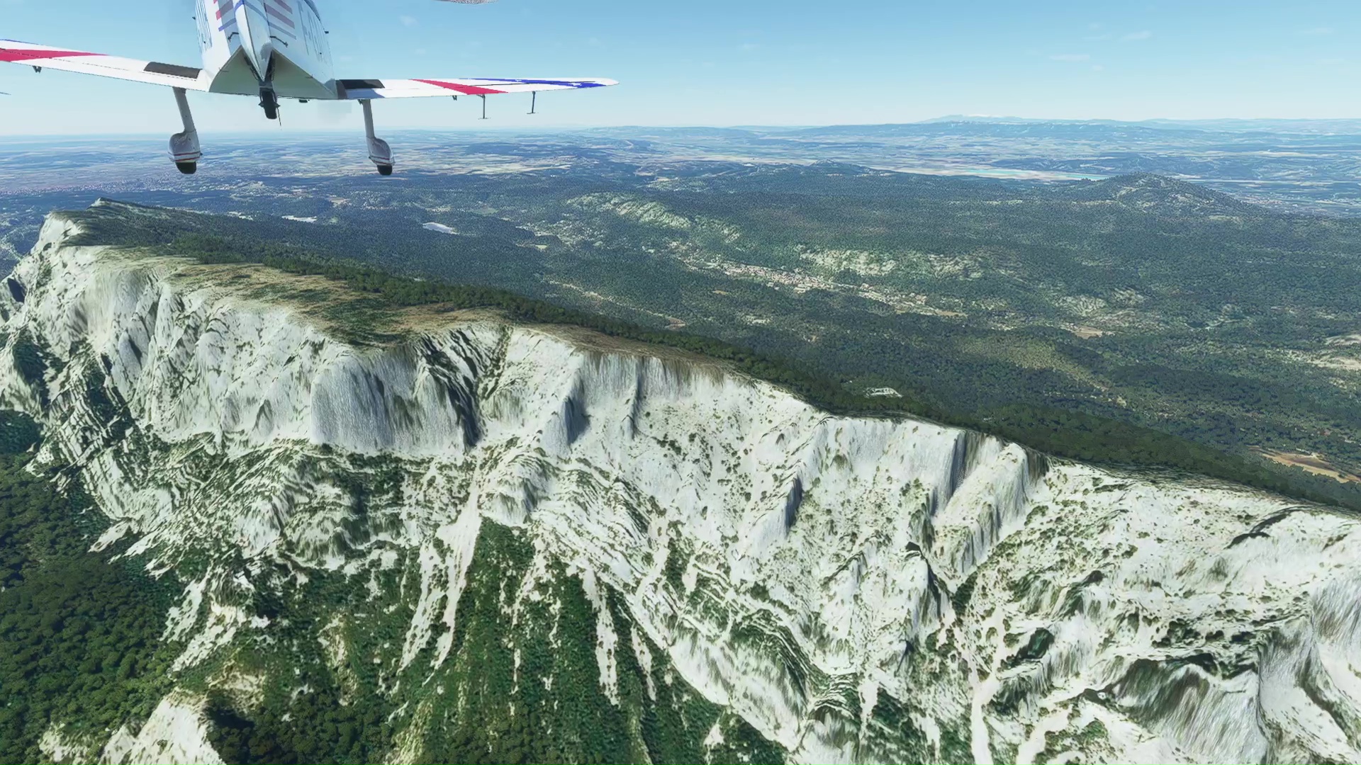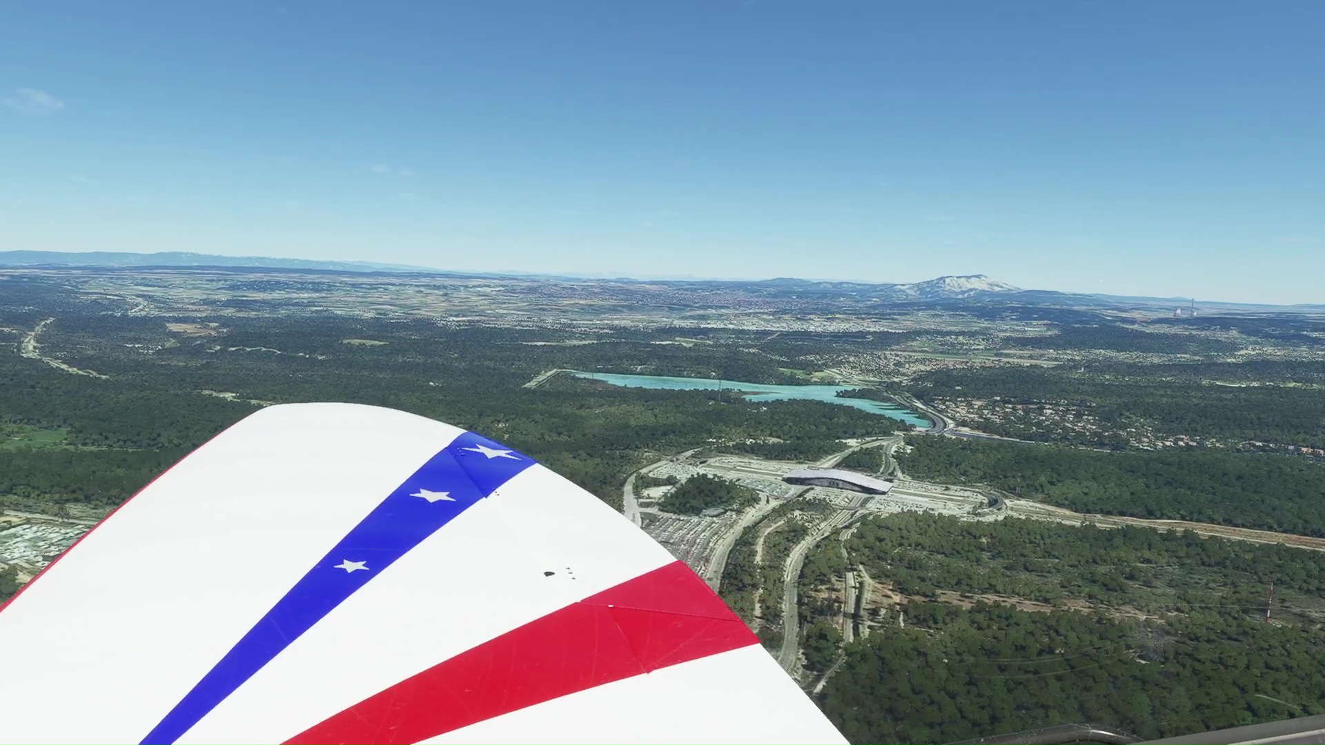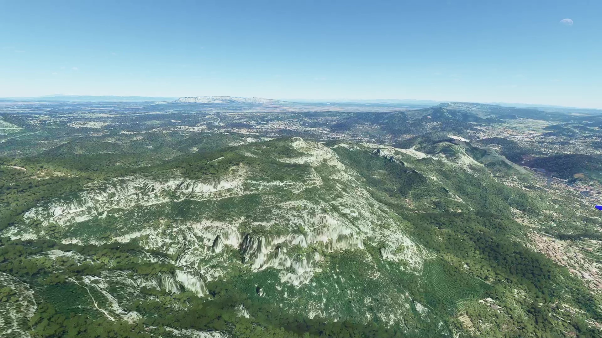 J'ai beaucoup aimé le survol de la Sainte Victoire sans le rendu photoréaliste et les zones de relief local rendaient bien, il faudra y revenir et passer plus bas que les 5000 ft où j'étais en sécurité par rapport à F-ES qui y arrivait. De manière générale il faudra revoir et même découvrir toute cette région en vol VFR local.
