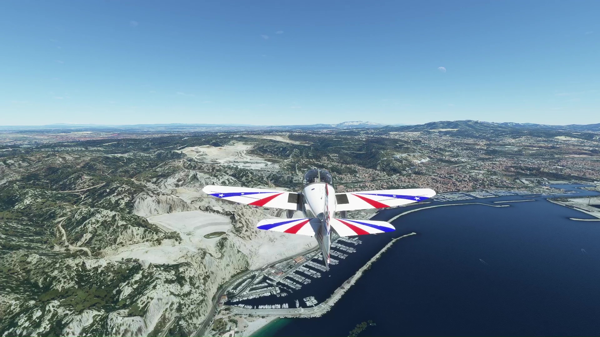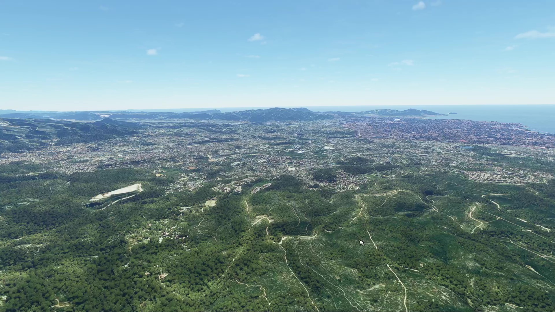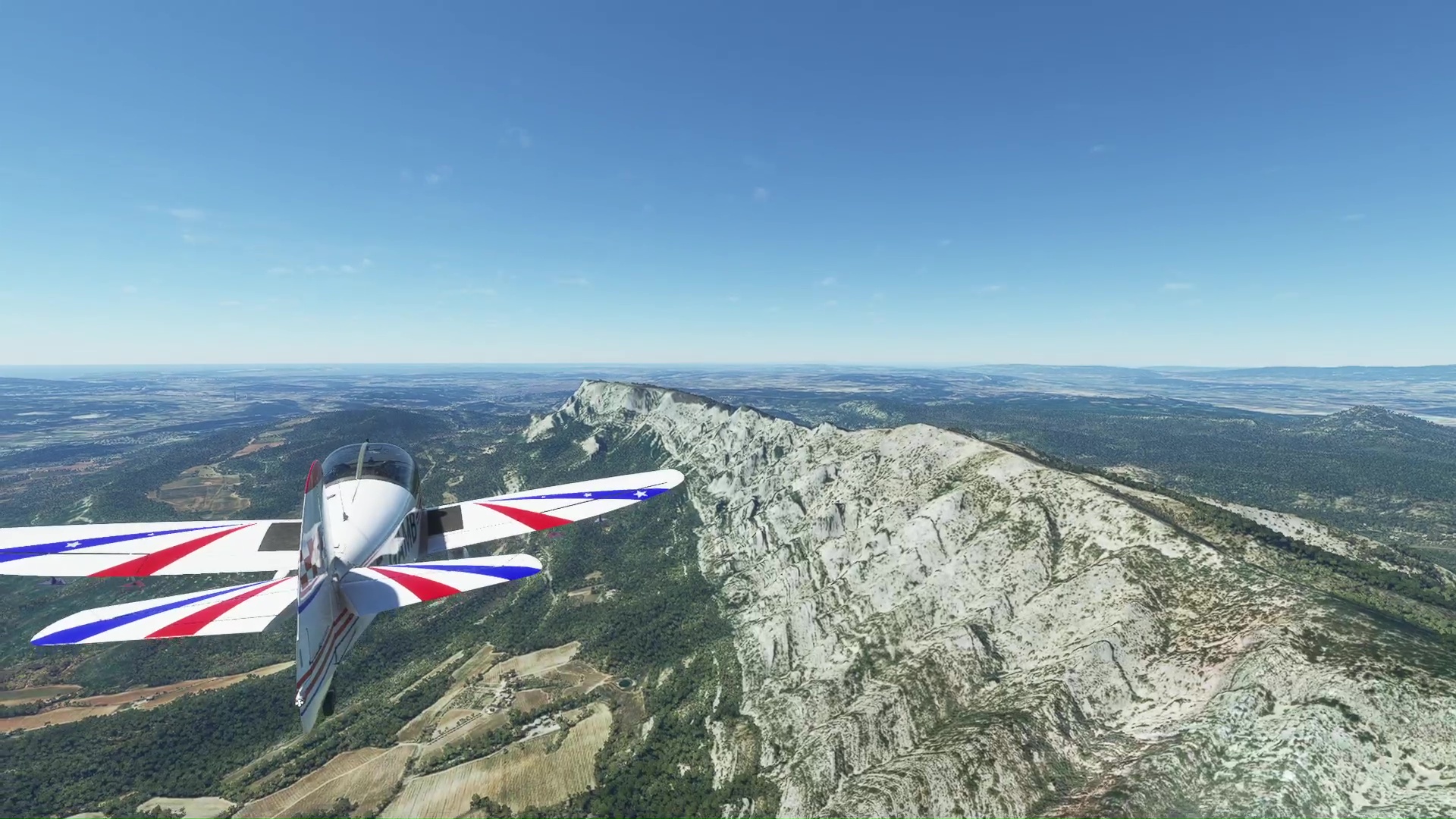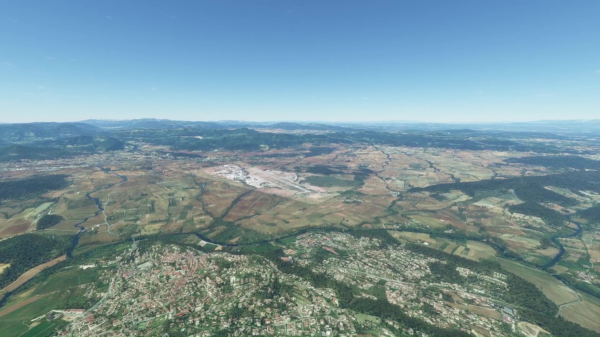J'ai beaucoup aimé le survol de la Sainte Victoire sans le rendu photoréaliste et les zones de relief local rendaient bien, il faudra y revenir et passer plus bas que les 5000 ft où j'étais en sécurité par rapport à F-ES qui y arrivait. De manière générale il faudra revoir et même découvrir toute cette région en vol VFR local.