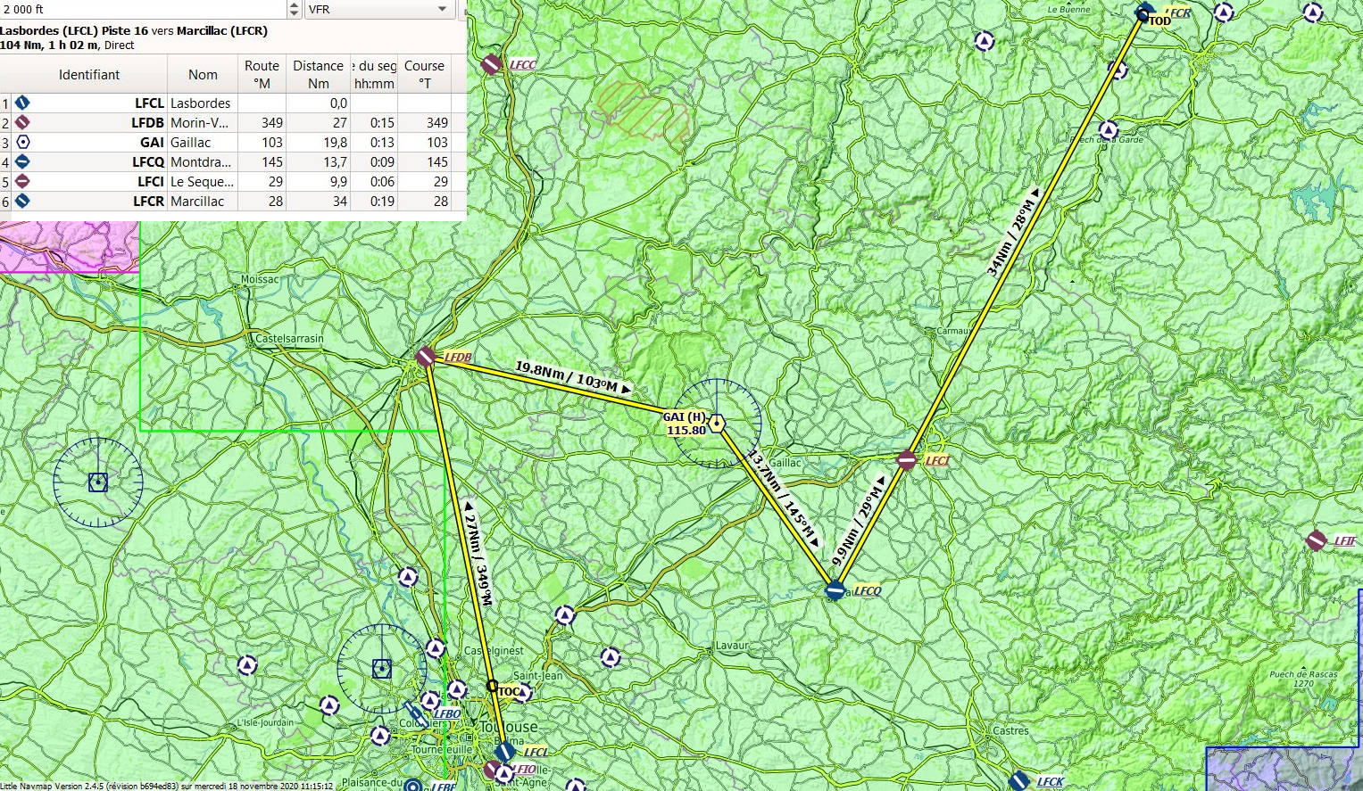 Chaque branche étant assez courte puisque de 06 à 19 minutes. Faire en sorte de contourner ce qui doit l'être pour être encore plus dans le vol VFR :-)