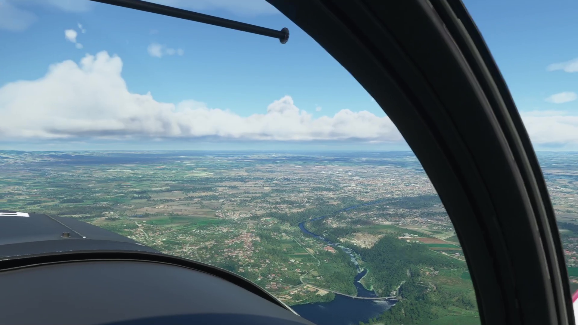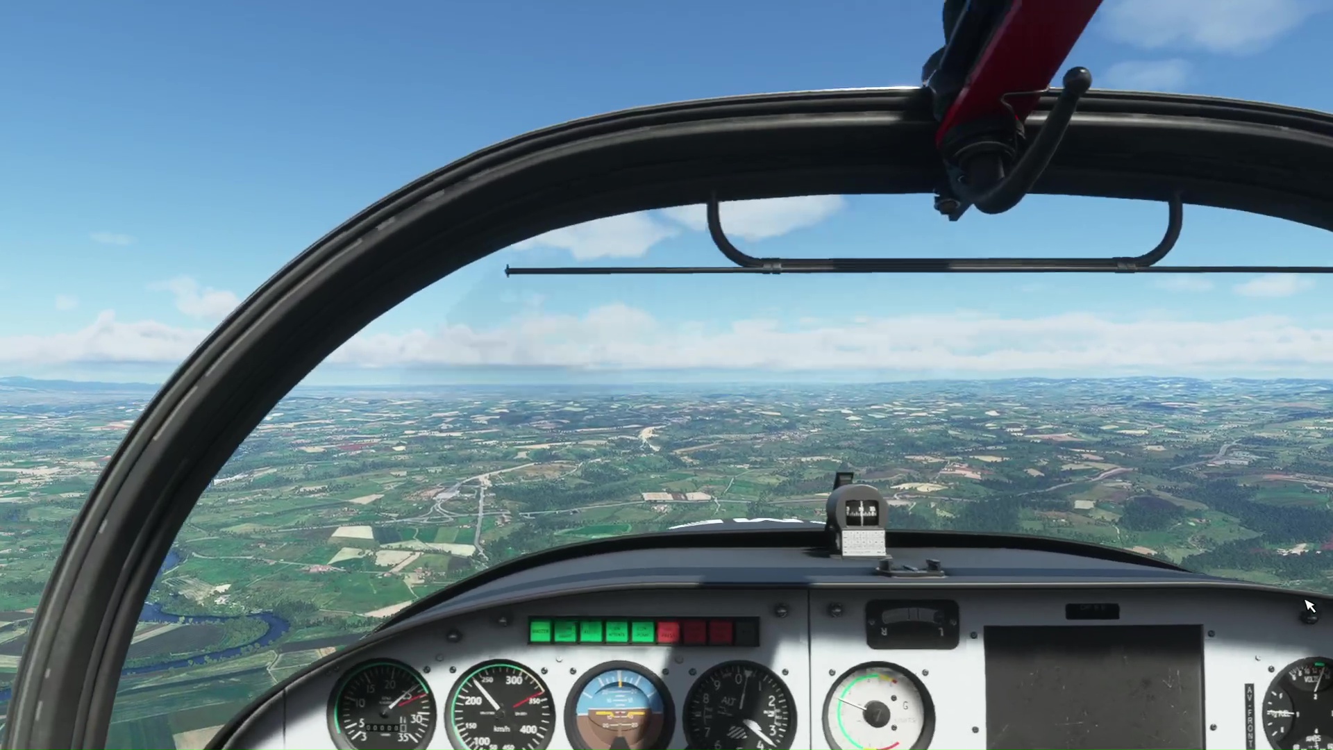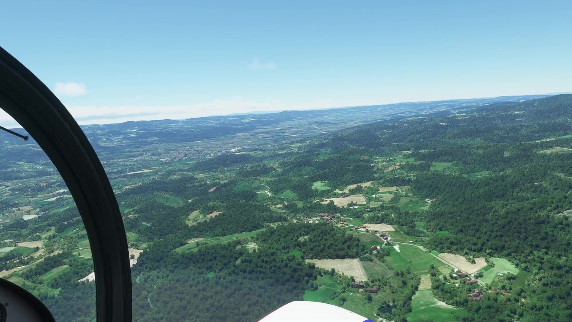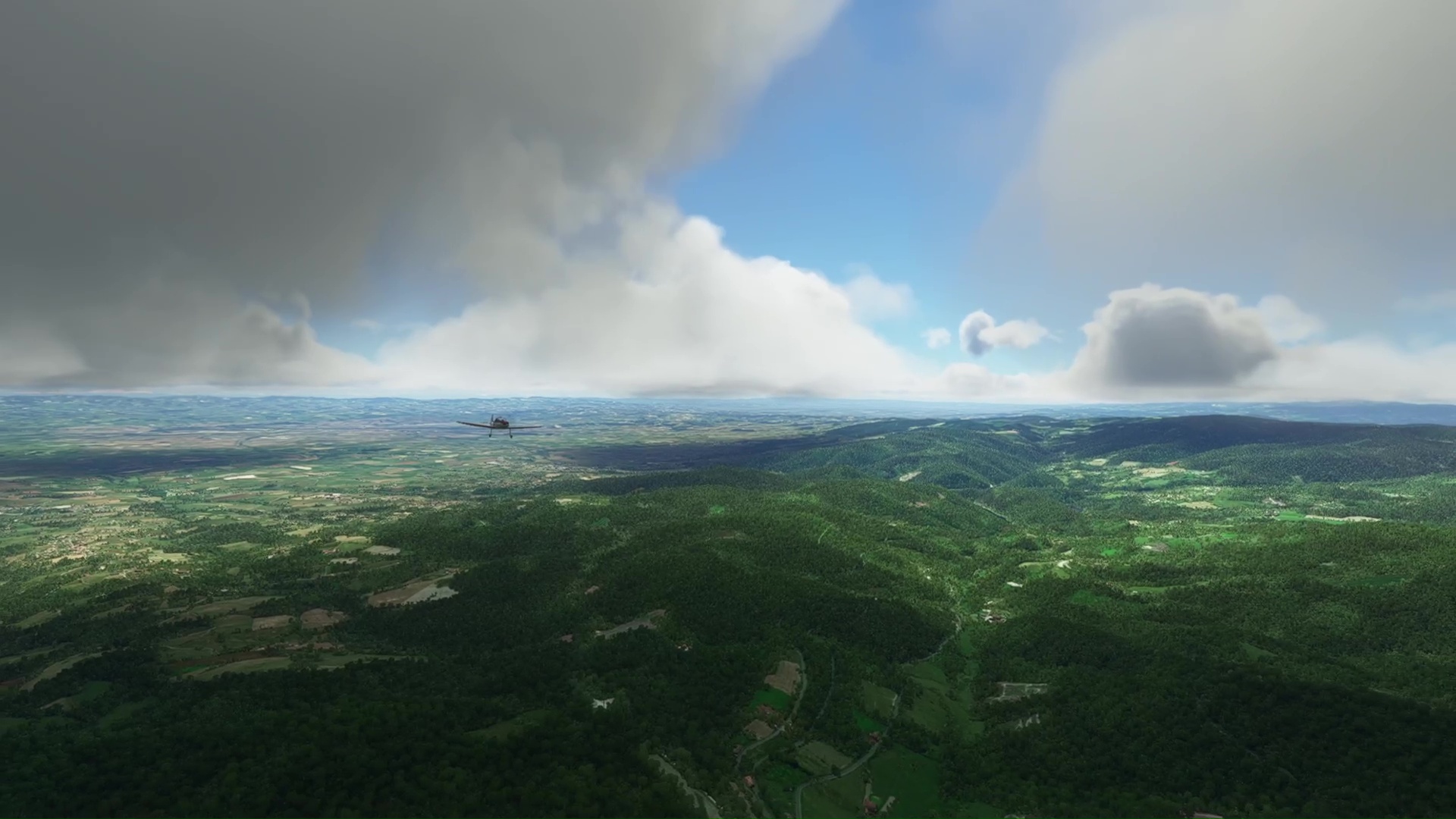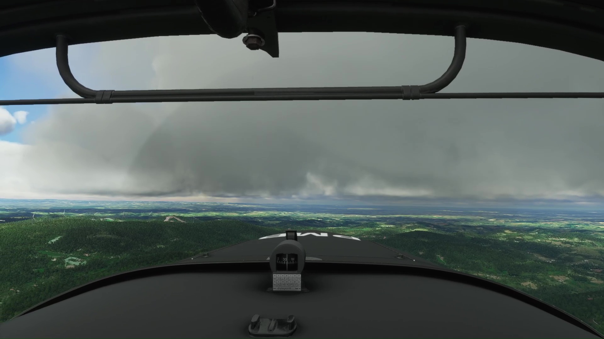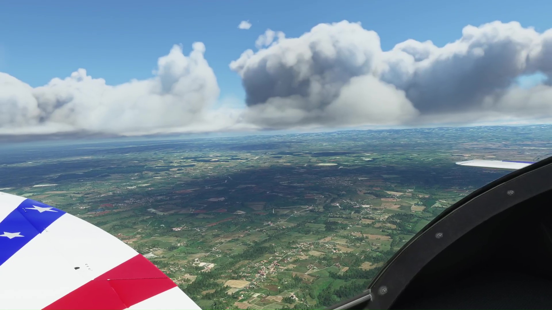 La météo a été très bonne sur les 2/3 ou 3/4 du vol, le reste s'est fait sous une imposante couche nuageuse, compliquant de fait un peu la reconnaissance au sol : pas facile de voir une ville dans l'ombre (il faudra voir à améliorer la texture des nuages tout de même). Et comme je me suis "égaré" (après un passage en drone) le jeu n'était que plus drôle. L'occasion de découvrir un autre piège : les feux fixes, peuvent ne pas venir d'un avion en vol. Cela n'a prêté trop à conséquence, mais cela m'a un peu berné aussi.