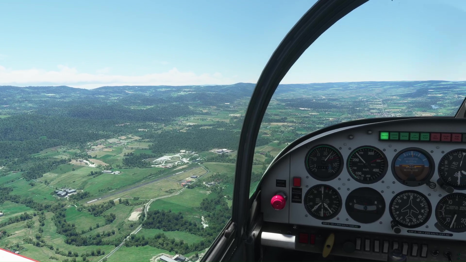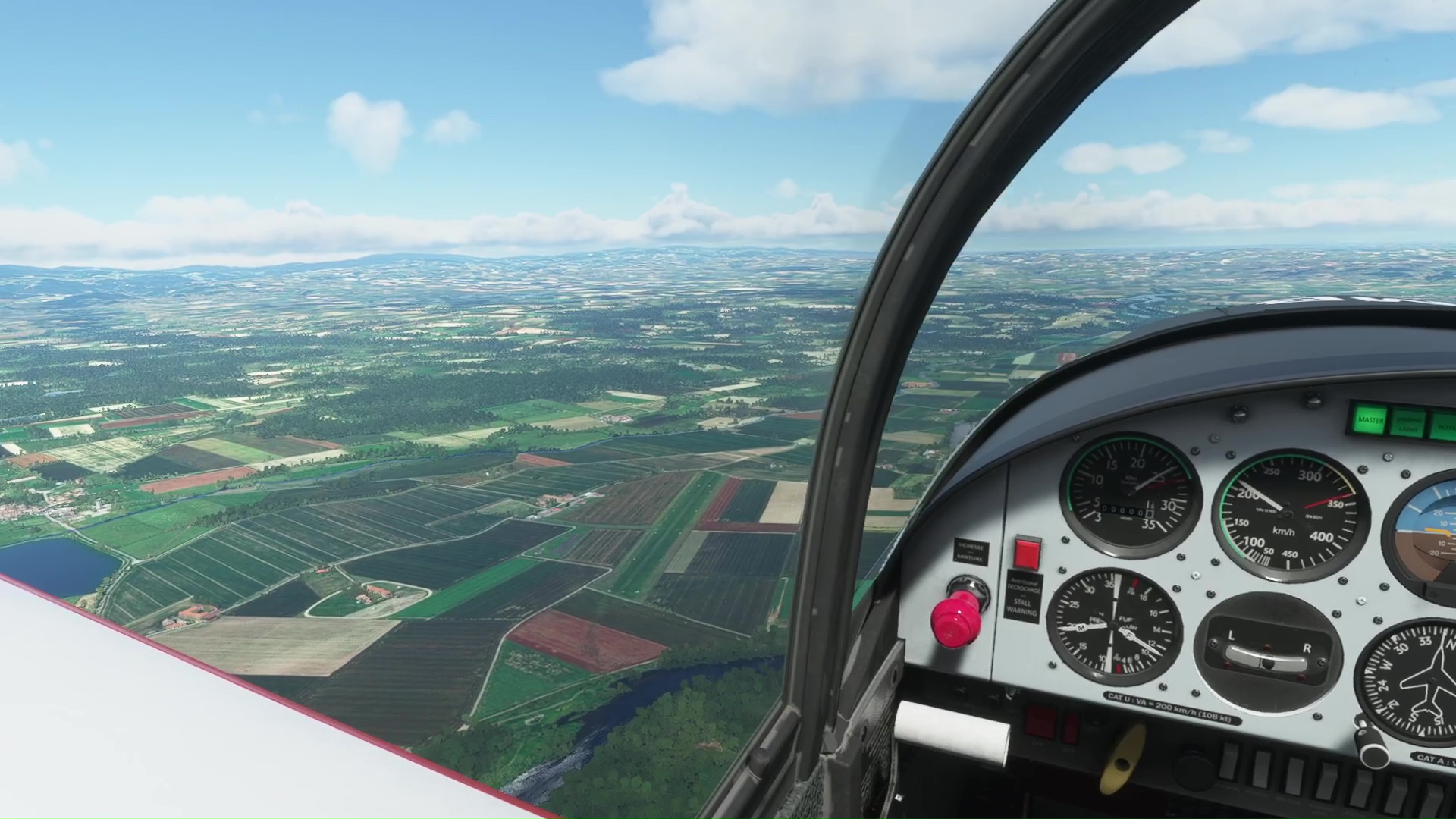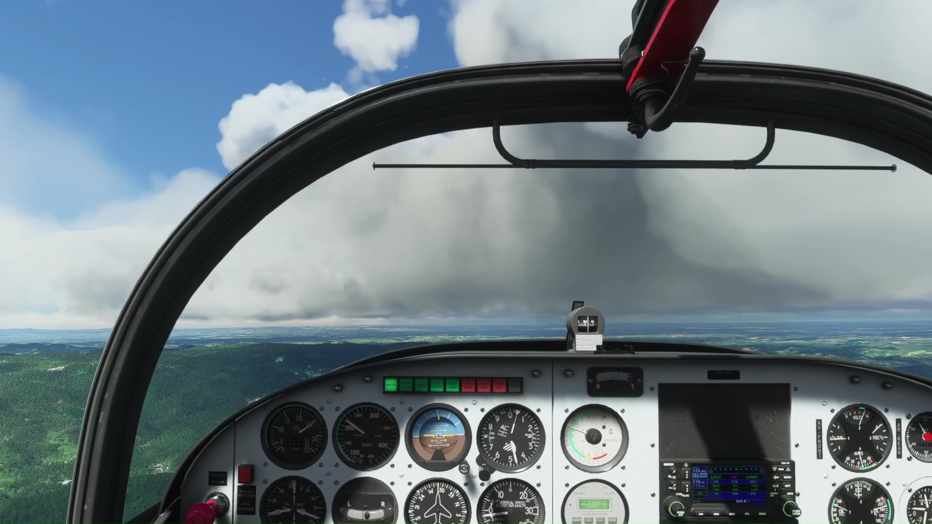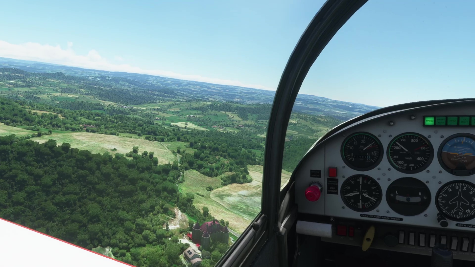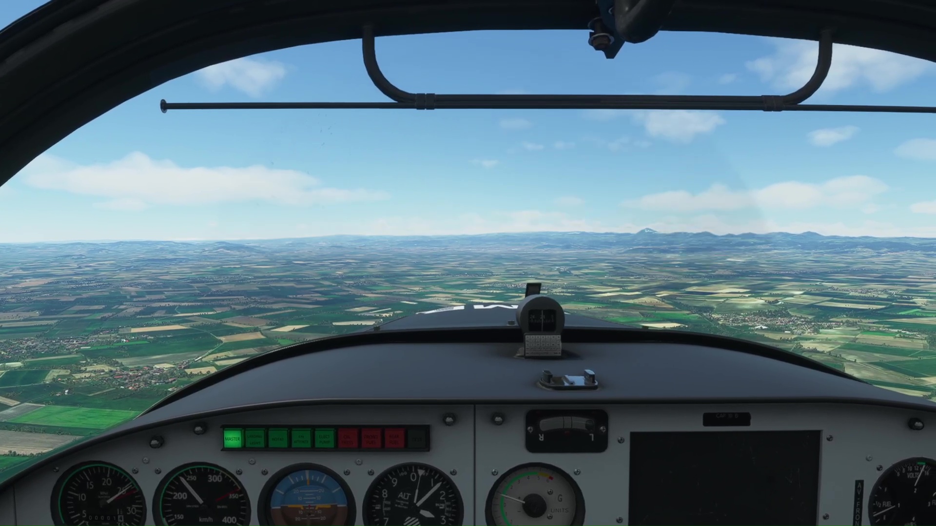 La météo a été très bonne sur les 2/3 ou 3/4 du vol, le reste s'est fait sous une imposante couche nuageuse, compliquant de fait un peu la reconnaissance au sol : pas facile de voir une ville dans l'ombre (il faudra voir à améliorer la texture des nuages tout de même). Et comme je me suis "égaré" (après un passage en drone) le jeu n'était que plus drôle. L'occasion de découvrir un autre piège : les feux fixes, peuvent ne pas venir d'un avion en vol. Cela n'a prêté trop à conséquence, mais cela m'a un peu berné aussi.