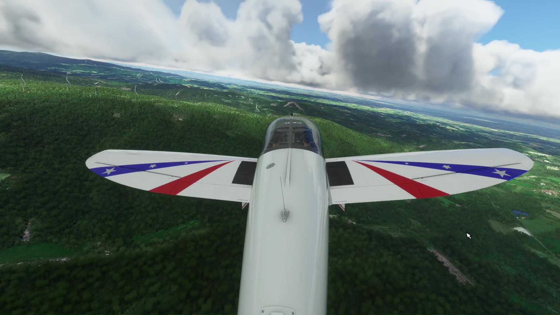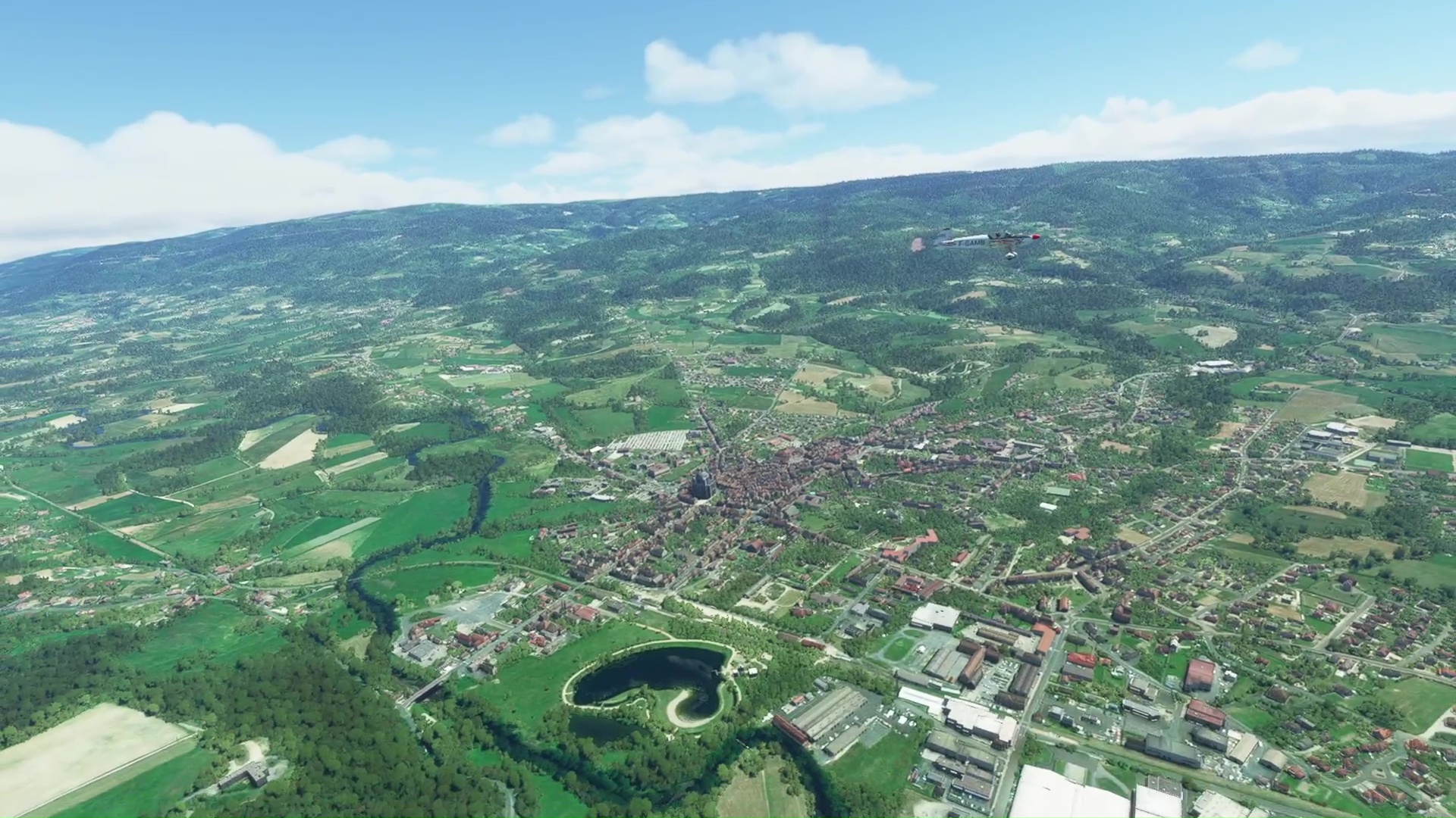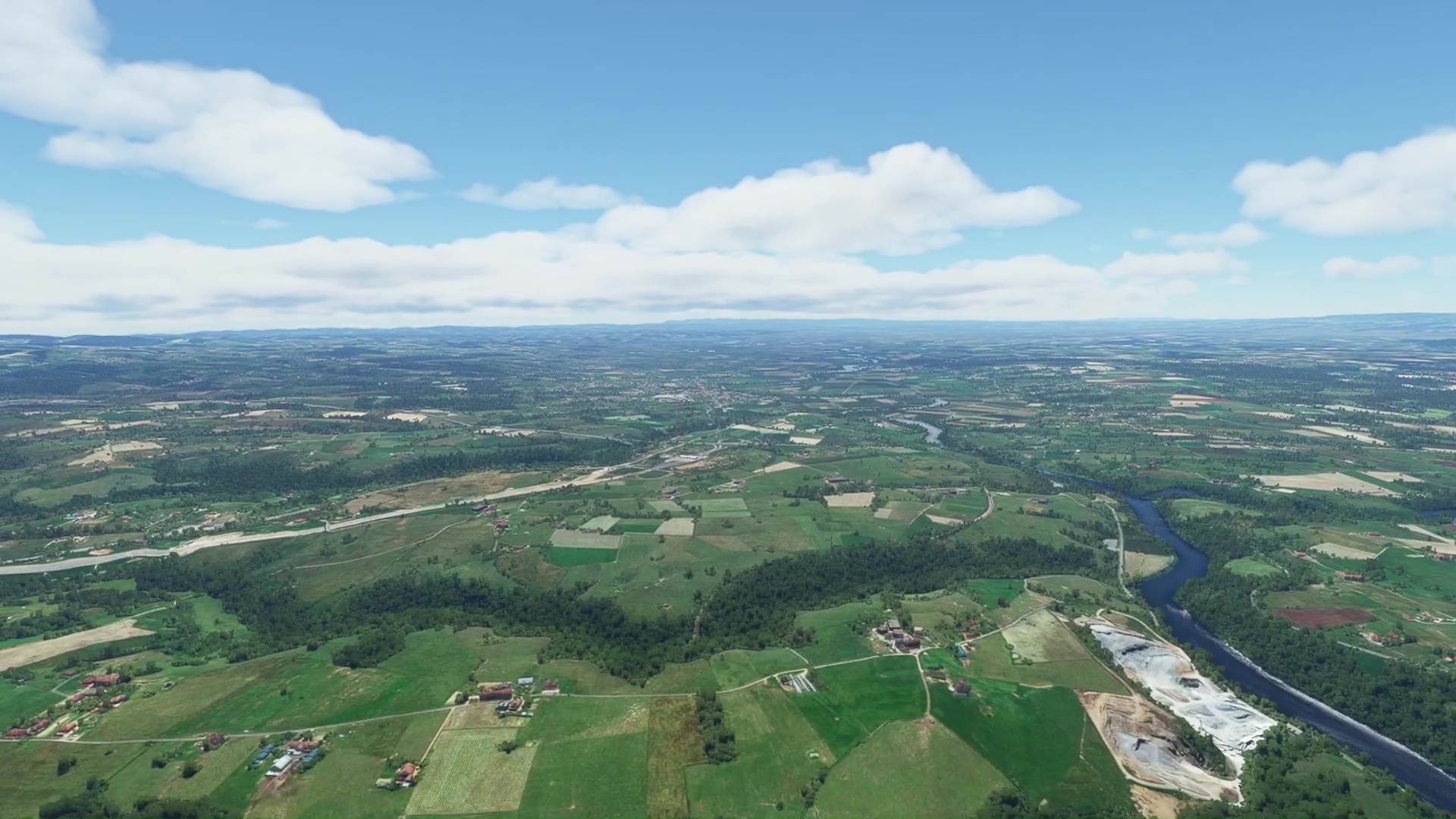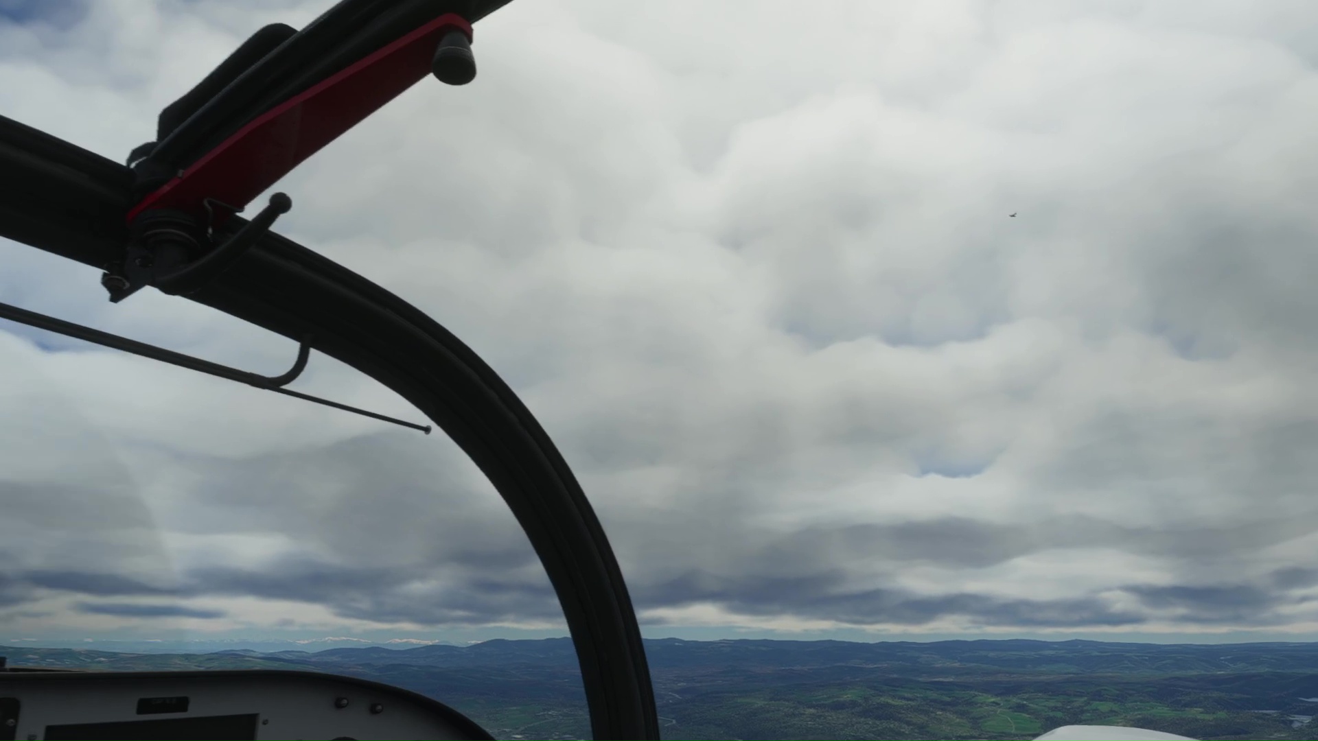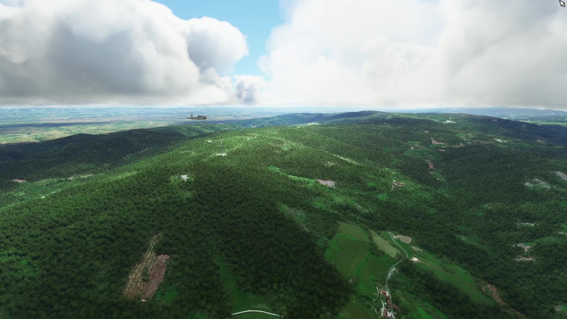 La météo a été très bonne sur les 2/3 ou 3/4 du vol, le reste s'est fait sous une imposante couche nuageuse, compliquant de fait un peu la reconnaissance au sol : pas facile de voir une ville dans l'ombre (il faudra voir à améliorer la texture des nuages tout de même). Et comme je me suis "égaré" (après un passage en drone) le jeu n'était que plus drôle. L'occasion de découvrir un autre piège : les feux fixes, peuvent ne pas venir d'un avion en vol. Cela n'a prêté trop à conséquence, mais cela m'a un peu berné aussi.