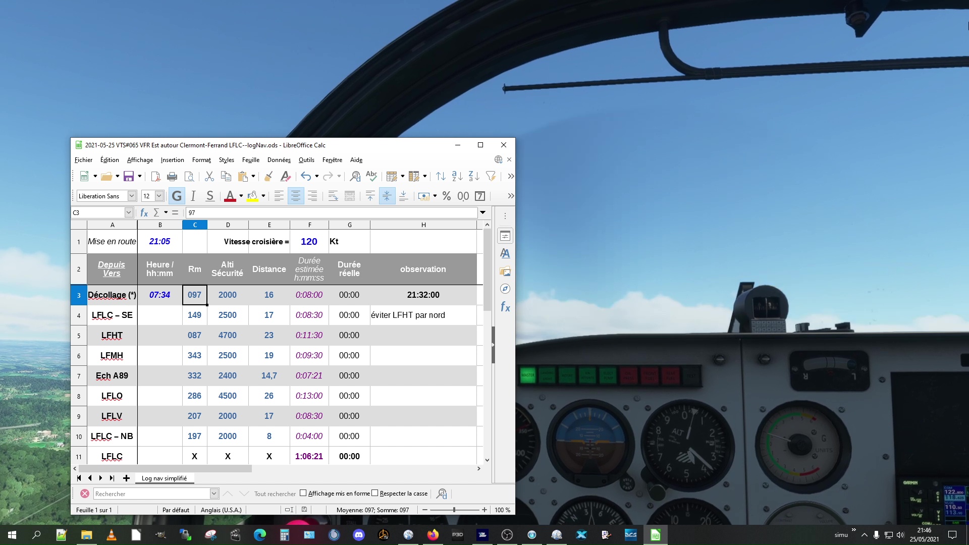 BONUS Log Nav : avec les fichiers habituels, vous trouverez un log de nav simplifié pour vous permettre de traiter la nav de manière plus réaliste encore en prenant en compte les temps de passage...Au besoin poser les questions sur l'utilisation dans le Discord (aéroclub ou French vACC en me notifiant !) Voir le vol du 11 mai 2021 où j'ai commencé à l'utiliser. A chacun de l'adaptater à sa propre navigation en fonction de son point de départ et sens de vol, celui-ci étant basé sur la nav proposée.