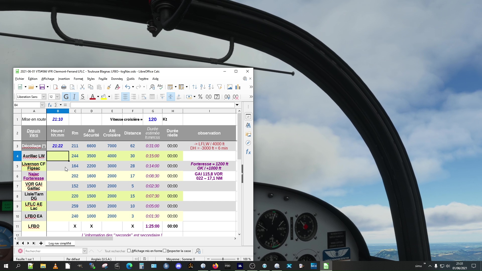 pour changer, et surtout s'adapter à la proposition d'arriver à Toulouse pour un entrainement de contrôleur TWR, voici une lognue navigation de 175 NM, soit 1h30 de vol au moins. Cela ne semble pas mais ça fait une différence, surtout avec les habituels touchés intermédiaires. Certes, il est posible de ne pas les faire, pour une fois, après tout, en réel on ne pratique pas cela.