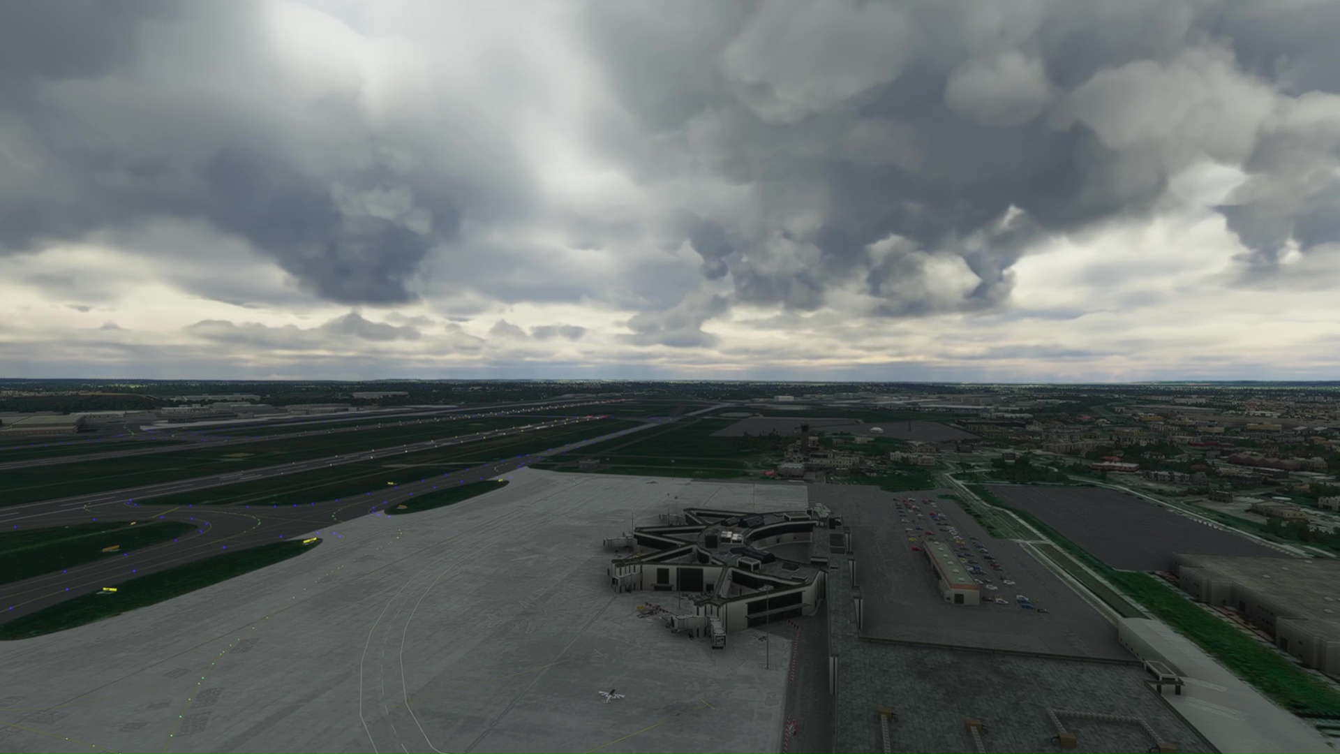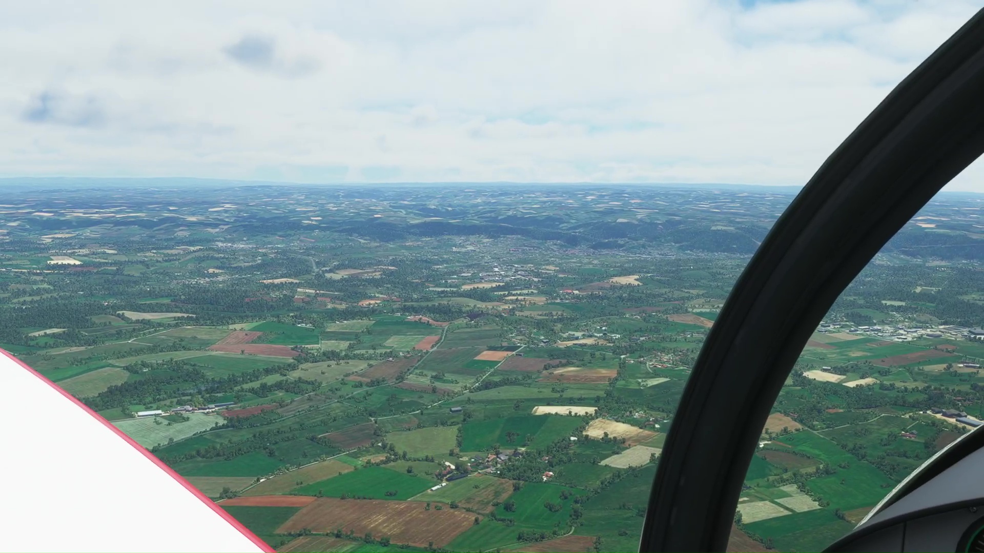 La MTO ne semblait pas forcément très dégagée, mais je suis parti en mode "réel" pour voir avec l'intention de switcher au besoin... Mais non. Il semble qu'on y prenne goût à voir des nuages en virtuel aussi. Même si il y a encore des progrès à faire, à moins de n'avoir pas bien réglé ce paramétrage, mais je ne vois. Un ciel couvert ne facilite d'aileurs pas les choses, ce qui est pas mal du tout en fait, même si l'inconvénient majeur est de moins bien profité du décor. Disons que l'ambiance peut à l'occasion compenser cela.