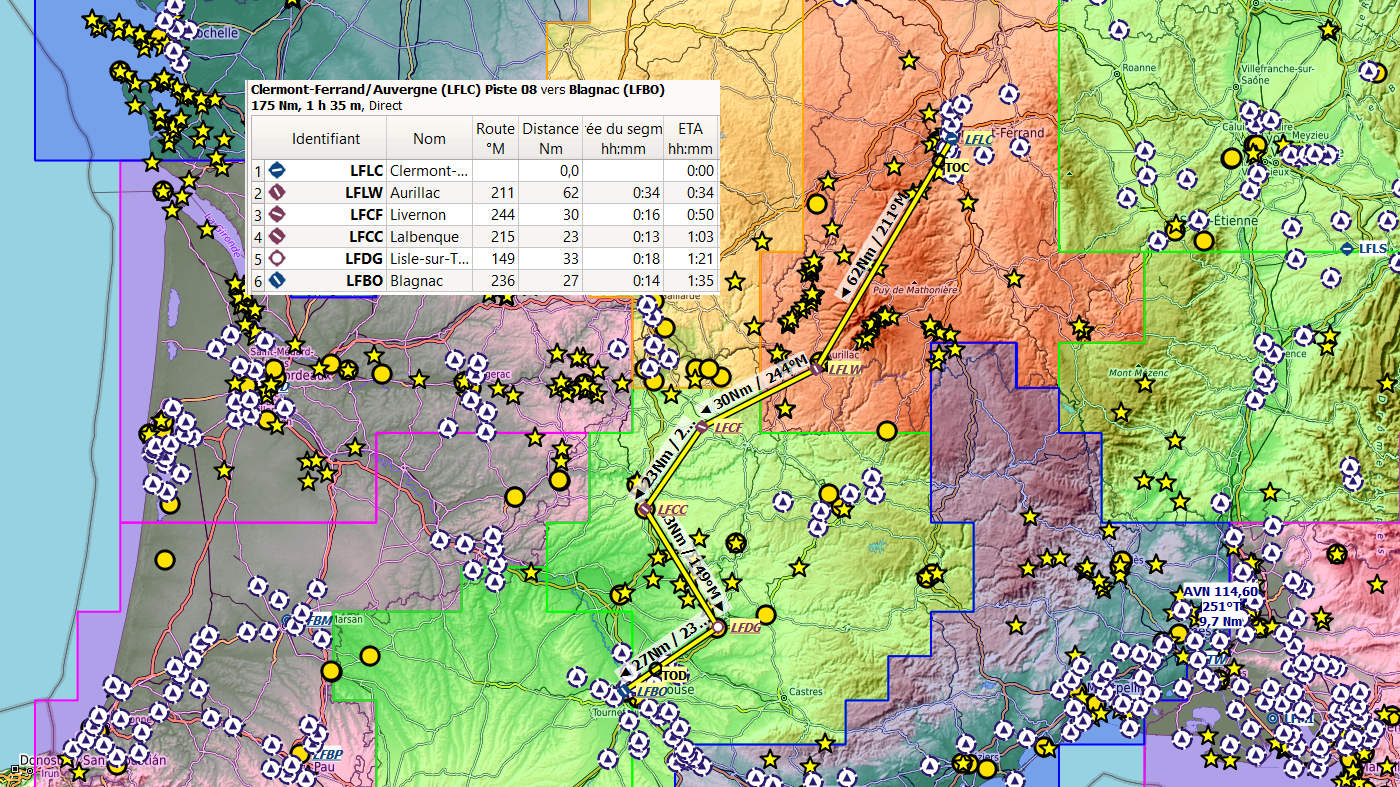 - Aurillac pour un vol VFR habituel avec passage sur les aérodromes, ou pas ...